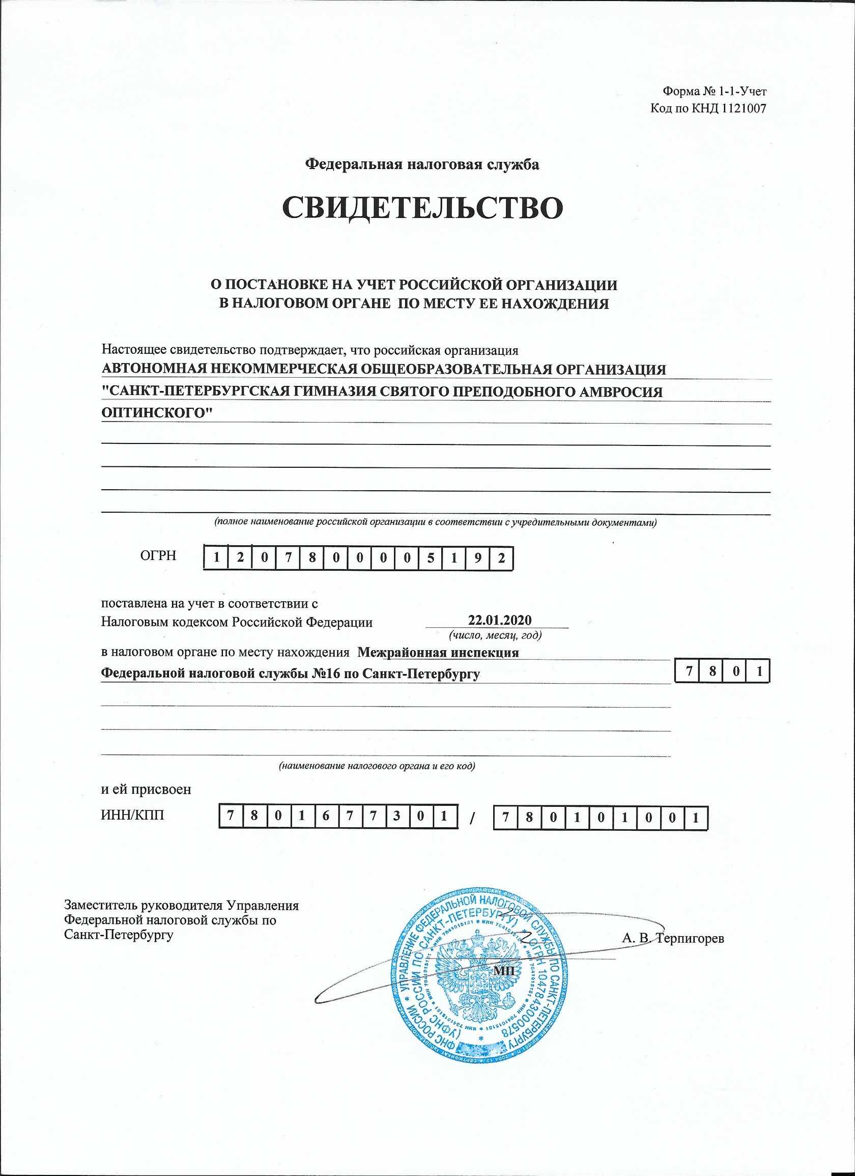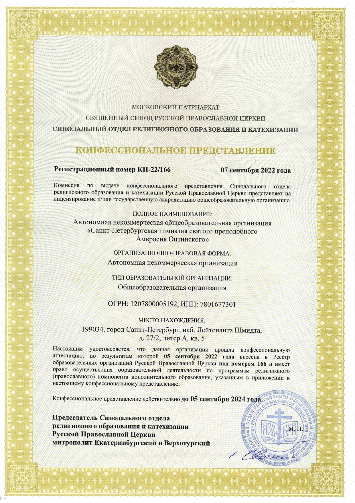САНКТ-ПЕТЕРБУРГСКАЯ ГИМНАЗИЯ СВЯТОГО ПРЕПОДОБНОГО АМВРОСИЯ ОПТИНСКОГО